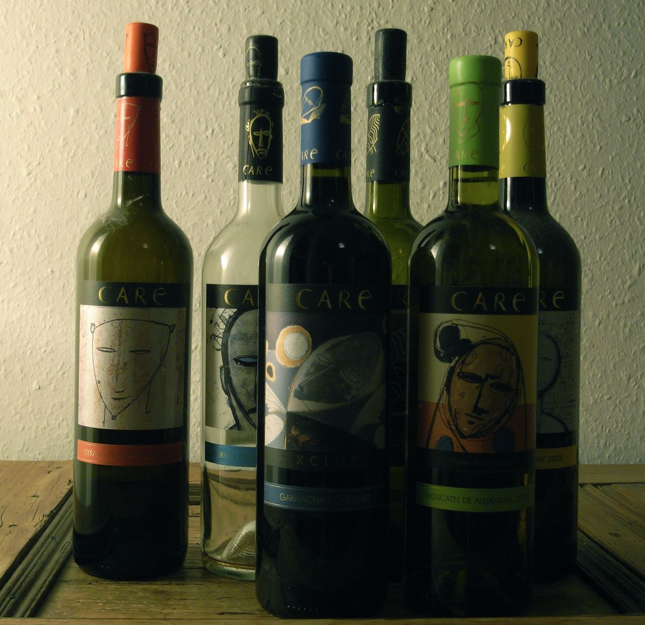 Schönes, frisches Design oder? Junges Unternehmen. Junge Zielgruppe. Das Design stammt von Javier Mariscal, dem Gestalter u.a. des Logos der Olympiade 1992 in Barcelona. Und die Auswahl, schaut euch mal die Auswahl an. Und das ist jetzt nicht nur die Allerweltsplörre. Allein vier Dessertweine und zwei Rosé. Von denen hätte ich gerne ein Probierpaket. Stattdessen ist das hier nur fauler Zauber; denn der Wein in der Flasche, die ich hier exemplarisch fotografiert habe, ist längst getrunken und eine zweite habe ich nicht.