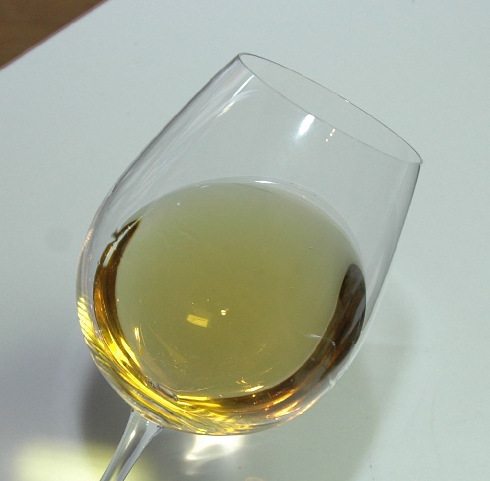 Geöffnet habe ich ihn schon am Dienstag. Die Farbe ist intensiv goldgelb. Zunächst steigt mir ein starker sherryartiger Geruch in die Nase. Nach zwei Stunden dann treten Aromen von Lindenblüten und Mandelgebäck hervor und verdrängen den Sherry wesentlich, aber nicht vollständig. Dies wird auch so bleiben.