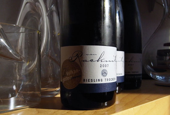 Die Weine des Weingutes von Racknitz haben mich ja schon deshalb interessiert, weil mir als altem Grafiker die Flaschengestaltung ins Auge fiel und ich dachte, dass sich da jemand gute Gedanken um Marketing und Kommunikationsdesign macht. Darüber hinaus dürfte das Ehepaar von Racknitz-Adams den Anspruch haben, in die erste Liga der Nahewinzer aufzurücken. Ich lese von Leidenschaft, Qualitätsstreben, einem Hang zum ökologischen Anbau und dem Wunsch, der Scholle, den unterschiedlichen Böden und Hängen in ihrer Einzigartigkeit gerecht zu werden.