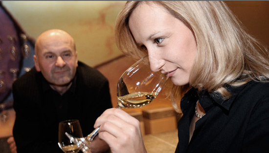 Dazu gehören die Weine von Horst Sauer vielleicht noch ganz, aber er ist auf dem Weg dorthin, seine Beerenauslesen und TBA haben jedenfalls das Zeug dazu. Aber letzten Endes geht es ja um den Anspruch und den Weg zu diesem Wein. Und ich nehme ihm ab, dass er einen ganz konsequenten Weg von Qualitätsstreben verfolgt, einen philosophischen dazu. Und jetzt kommt seine Tochter Sandra dazu, die den Weg mitgeht und einen markanten frischen Stil mit ins Spiel bringt. Das führt zu einer neuen Rasse in der Klasse.