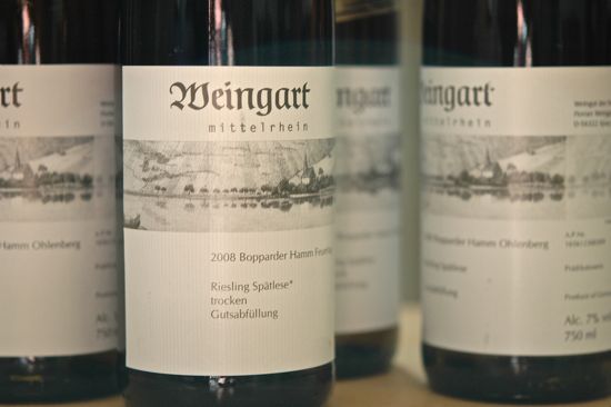 Den Weinen fehlt, zumindest zum jetzigen Zeitpunkt, die Eleganz des letzten Jahrgangs. Dagegen sind sie deutlich frischer, deutlich klassischer Riesling mit immer noch relativ hohem Säureanteil. Vielen wird dieser Wein nicht behagen, und wenn man die trockene 2007er Ohlenberger Spätlese gegen die von 2008 stellt, sind es zwei völlig unterschiedliche Weine, wenn auch die Herkunft, das Floral-tropisch-Würzige des Ohlenbergs im Gegensatz zu den Aprikosenrieslingen der Feuerlay durchaus lagentypisch bei beiden gleich ist. Dagegen fehlt im 2008er die Tiefe und der Schmelz, der den 2007er Ohlenberg auszeichnet. Dieser wurde, wie auch diverse andere 2007er, wieder präsentiert und zeigt sich deutlich entwickelter, man könnte sagen erwachsen.