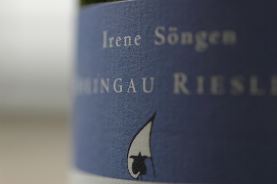 Ich jedenfalls fange mal an mit dem Wein einer Winzerin, von der ich nicht viel weiß, außer dass die Flaschen ihres Weingutes schöne Etiketten zieren und dass der Riesling Kabinett aller Ehren wert ist. Irene Söngen bewirtschaft mit ihrem Mann 8 ha Weinberge bei Hattenheim und Hallgarten. Diese sind ausschließlich mit Riesling bestockt.