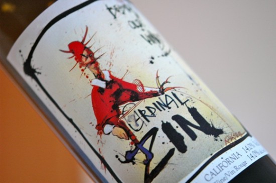 Auch wenn dieser Wein 14 % Alkohol in sich birgt, ist er ein durchaus schlanker Vertreter seiner Art. Es ist ein Zin, ein Zinfandel – ein Wein also, mit dem ich im Wesentlichen aufgespritzte Botox-Weine verbind, die ich normalerweise rechts in die Kategorie Popcorn-Wein verlagere. Nicht so dieser salopp daherkommende Rote, wo Zin draufsteht, aber nicht komplett Zin drin ist. Auch wenn es die dominierende Rebsorte ist, haben sich Carignan und Sangiovese eingeschlichen. Eine ungewöhnliche Kombination, die aber nicht weiter überrascht, wenn man Randall Grahm kennt, den Macher dieses Weins und Gründer der Bonny Doon Winery. Da ist so ziemlich alles ungewöhnlich. Der Mann verschneidet auch kalifornische Weißweine mit Moselriesling. Er arbeitet völlig unorthodox, die Weine sind genauso wie die Etiketten. Sie spielen mit den verschiedensten Stilen, nichts ist ihm wirklich heilig und trotzdem ist er kein Ikonoklast, er zerstört nicht, sondern zitiert.