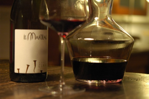 Von Le Marteau wurden lediglich 8.952 Flaschen gefüllt mit einer Cuvée aus Syrah, Grenache und Carignan. Der Wein stammt nicht, wie meist vom Pic St. Loup sondern von seinen Lagen in Saint-Cristol, 20 Kilometer vom Gut entfernt. Gestern abend, nach einer Reise durch Rheinhessen wo natugemäß vor allem Riesling und Silvaner und Burgunder auf dem Programm stand und wir uns durch den Schnee zurück nach Hause gekämpft hatten mochte ich noch ein Glas warmen, sonnenverwöhnten Wein. Le Marteau hat viel Sonne in der Flasche. Allerdings, so merke ich heute, sollte man ihm Zeit lassen. Denn was er mir gestern quasi um die Ohren gehauen hat war ein Fruchtkonzentrat aus schwarzem Holunder, Brombeer und Cassis. Das strömte förmlich aus dem Dekanter und lief dick über die Zunge. Le Marteau – zu deutsch der Hammer. Pierre Clavel scheint es so gewollt zu haben. Hitze und reifstes Lesegut verbinden sich hier. Erst heute finden sich in diesem tiefvioletten Wein noch andere Aromen von rohem Fleisch, Gewürzen und Kräutern. Und, die dem Wein innewohnende Mineralität verleiht ihm eine gewisse konträre Kühle. Die rettet ihn nicht nur vor der Idee, das Konzentrat in Marmeladengläser abfüllen zu wollen, sie beflügelt ihn und macht ihn spannend.
