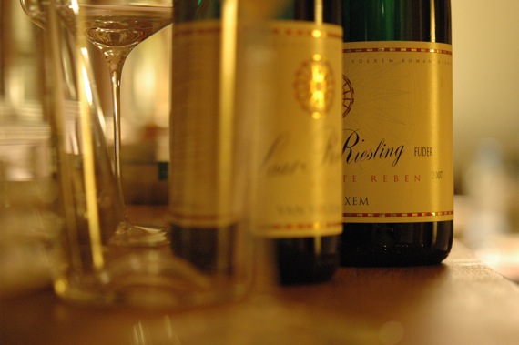 Amüsant aber ist, wo ich gerade die bisherigen drei Artikel verlinke, dass im ersten steht, dass ich den 2005er Saar Riesling bei einem Freund getrunken habe, der sonst keinen Riesling trinkt und dieser der Einzige sei, den er mögen würde. Gestern habe ich der Burgunderfrau einen eingeschenkt und siehe da, jene, die sonst Riesling als Fiesling verschmäht, fand Gefallen an diesem vollen, reifen Tropfen, dem anscheinend eine gewisse Riesling-Markanz abgeht, die die meisten anderen Weine dieser Rebsorte sonst wohl vorweisen.