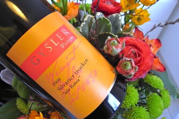 Gyslers Weine sind glockenklar, wenn ich das mal so formulieren darf, reintönig und frisch, wie zum Beispiel der Silvaner “alte Reben”, den ich gerade im Glas habe. Feine Würze paart sich mit Aromen von reifer Birne, dabei wirkt er leicht salzig und mineralisch vom rotliegenden Gestein. Trinkt man den Wein, füllt sich der Mund mit der gleichen herrlichen Kombination aus Würze und Frucht, gepaart mit einer leichten Restsüße. Der Wein ist fülliger als zunächst in der zurückhaltenden Nase vermutet, dabei aber trotzdem wunderbar klar und gradlinig, mit einem langen Abgang. Ein feiner rheinhessischer Silvaner.