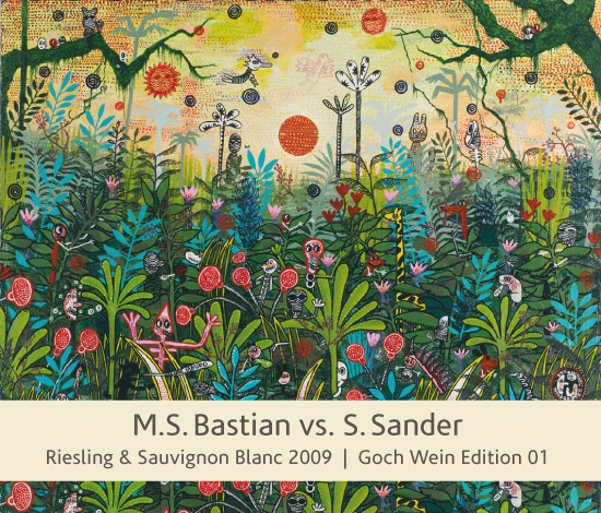 Mit Stefan Sander aus Rheinhessen haben wir zu einem Motiv von M.S. Bastian eine frische Cuvée aus Sauvignon Blanc und Riesling abgefüllt, die knackige Säure, Schmelz und Steinostfrucht mit Sauvignon-Aromatik verbindet. Die Auflage ist auf 600 Flaschen limitiert.