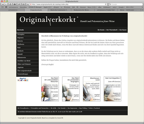 Ich hatte es ja nun mehrfach angekündigt, dass aus dem einfachen Menüpunkt »Weinhandel«, bei dem es nicht mal eine Bestellfunktion gibt, ein erwachsener Shop werden würde mit einer persönlichen Auswahl an Weinen. Das hat jetzt doch deutlich länger gedauert weil es doch ein, wie ich finde, umfangreiches Angebot geworden ist.