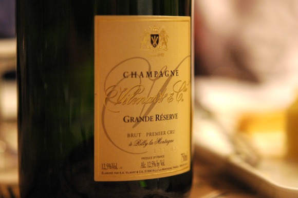 Traditionell beginnen wir unsere Abende mit einem Champagner, in diesem Fall mit einer Grande Réserve des Hauses Vilmart & Cie, Rilly-la-Montagne aus dem nördlichen Bereiche der Grande Montage de Reims.