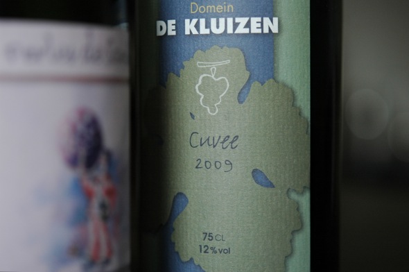 In der Weinhandlung Mig’s World Wines habe ich mich beraten lassen und drei Flaschen mitgenommen. Beginnen wir mit einer Weißwein-Cuvée des flämischen Weingutes Domein de Kluizen, gelegen auf der Grenze zwischen Aalst und Affligem, wem das etwas sagt. Es handelt sich hier um einen flämischen Landwein.