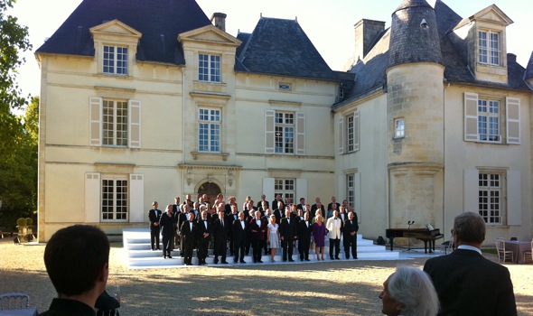 Die Winzer der Grand Cru Classé en 1855 stellen sich zum Gruppenfoto