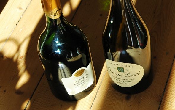 Im Gegensatz zu den meisten Winzerchampagnern ist es bei den größeren Produzenten üblich, relativ früh zu ernten, der Alkoholgehalt liegt üblicherweise bei 10%. In den so genannten Häusern, den klassischen Champagner-Produzenten, wird viel mehr im Keller gemacht als bei den Winzern. Gilt dort eher das Prinzip, aus einer Lage und einem Jahrgang das Beste herauszuholen und schon viel mehr dafür im Weinberg zu unternehmen, können und wollen sich die großen Häuser Jahrgangsschwankungen bei den meisten Weinen gar nicht leisten. Der Kunde möchte dies nicht. Und die Tradition ist eindeutig. Wer Champagner eines renommierten Hauses kauft, möchte eine gleichbleibende, nicht allzu schwankende Qualität. Die Jahrgangschampagner werden dementsprechend nur in den guten Jahrgängen produziert und allein sie bringen eine gewisse Individualität, auch wenn diese begrenzt bleibt. Das hat alles sein Für und Wider und spricht auch keineswegs gegen die vorhandene Qualität eines Stils. Für mich gehören Krugs Champagner beispielsweise zum Besten, was ich kenne – auch und gerade wegen des gleichbleibenden Stils. Nur ist der Ansatz eben ein anderer.
