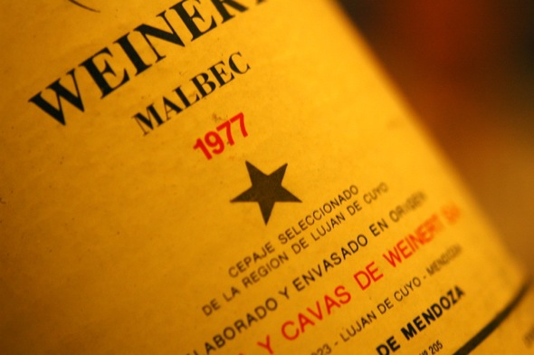 Dabei war sein direkter Konkurrent kaum minder beeindruckend. Zumal, als wir dann später erfuhren, was das für ein Wein war. In der Nase fanden sich gesetzte Fruchtnoten, etwa so wie ich sie von McBaren Plumcake erinnere, einem Tabak, den einer meiner Lehrer früher geraucht hat – also Virginia-Tabak mit Rum versetzt. Dazu fanden sich Nüsse, ein paar laktische Noten, die Erinnerung an warme Milch und auch Milchschokolade. Am Gaumen dann wieder diese fermentierte Frucht, dazu Schokolade und etwas, das mich an Baumkuchen erinnerte. Dieser Malbec, denn darum handelte es sich, dieser Malbec aus dem Jahr 1977 war ein zutiefst beeindruckender, ziemlich perfekt gereifter, großer Wein, das kann ich nicht anders sagen. Ich muss gestehen, dass mir völlig unbekannt war, dass dort um diese Zeit schon so gute Weine erzeugt worden sind. Carlos Weinert, ein deutschstämmiger Brasilianer, der mit dem 1977er seinen ersten Jahrgang herausgebracht hat zeigt dies aber eindrücklich. Weinerts Wein ist der beste Malbec, den ich bisher getrunken habe. Sein 1977er Estrella wirkte kein bisschen müde. Der Wein stammt, wie alle Weine Weinerts nicht etwa aus kleinen Barriques sondern aus großen, alten Holzfässern. Bis heute bringt Weinert seine Weine erst dann auf den Markt, wenn sie wirklich reif sind. So finden sich heute 2005er und 2006er Jahrgänge zum Erwerb. Bei wein48.de, sehe ich gerade bei meiner Recherche, gibt es den 1977er Estrella noch zum Erwerb. Wer sich solche Weine leisten kann, sollte diesen unbedingt mal probieren.