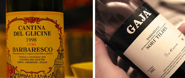 Beim ersten Rotwein-Paar war es wieder die Annäherung an etwas Unbekanntes. Ich habe noch wenig Erfahrung mit gereiftem Piemont. Ausserdem nähern sich die Weine an, je älter sie werden. Wenn die Primärfrucht schwindet, verliert der Wein damit auch einige typische Identifikationsmerkmale. Es wird schwieriger. Im ersten Moment war ich bei den beiden Weinen im Bordeaux, dann hatte ich tatsächlich eine Idee von Piemont, um dann im Burgund zu landen – was die Mehrheitsmeinung am Tisch war und ich konnte meine Piemont-Ahnung nicht wirklich begründen. Der Wein der Curà ist mir nicht wirklich in Erinnerung geblieben. Er wirkte ein wenig müde. Leicht röstige, warme Frucht, hier fehlte das Säurekorsett.