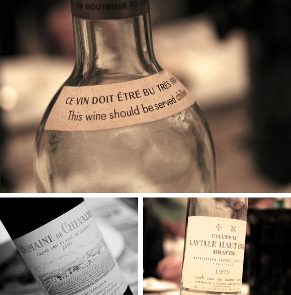 Und dann kam Bordeaux. Und das Erste, was mir beim Schnuppern des Chevalier in den Sinn kam war: Leider geil! Ein ganz selten genossener Duft, der mich an Reisgrütze erinnert hat, verbunden mit einer leichten Süße. Dazu ein Hauch von nassem Holz und Mandeln. Dann Pilze und Kalk. Mir kam in den Sinn: Ein calvinistisch strenger Wein von seltener Schönheit – sehr tief, sehr klar, kein bisschen verspielt. Neben all der Pilzrisotto-Aromatik gab es dann doch noch einen Hauch von Frucht: eine oxydierte Birne schaute vorbei und bei zunehmender Zeit im Glas zeigte sich immer mehr Mineralik.
