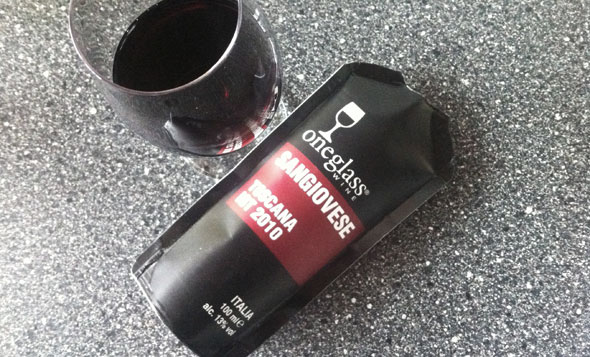 Es gibt so viel anonymen Wein auf dem Markt, dass es immer wieder neuer Marketingideen bedarf, um das Zeuchs an den Mann oder die Frau zubringen. Da findet man Prosecco in Dosen oder Wein im Plastikglas mit Alufolienversiegelung. Und dann gibt es da noch oneglas (Trademark) Wine. Wein aus der 100ml-Tüte, servierfertig portioniert und stilistisch passend zum Aufreispack Gourmetessen für die Mikrowelle.