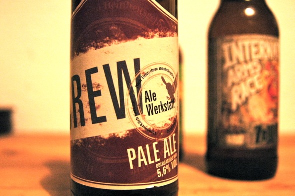 Das Crew Pale Ale allerdings ist meiner Meinung nach besser. Da haben die beiden Selfmade-Brauer Mario und Tim aus München etwas wirklich Süffiges hinbekommen, das dem auch schon gelungenen Ratsherrn Pale Ale aus Hamburg deutlich Konkurrenz auf dem noch überschaubaren Pale Ale Markt in Deutschland macht. Das PA wird mit 40er Stammwürze und Herkules, Nelson Sauvin, Chinook, Citra und Cascade-Hopfen gebraut. Es besitzt eine rötlich-braune Farbe und eine stabil-dichte Schaumkrone. In der Nase hat mich etwas Cassis überrascht, dazu kommen Limetten- und Orangenschalen. Das Bier hat nicht die krassen Bitternoten etwas traditionellerer Ales, es wirkt, ähnlich wie das Sierra Nevada, eher etwas leichter, wässriger als es der gemeine Ale-Trinker gewohnt sein dürfte. was ich angenehm ist, dass sich die Süße deutlich im Hintergrund hält. der Hopfengeschmack ist, wie gesagt, nicht zu bitter aber schön komplex, was kein wunder ist bei der Vielfalt an verwendeten Sorten. Ich finde, man sollte dieses Projekt definitiv unterstützen, und ich bin gespannt auf das zweite Bier, was die beiden im Programm haben, das IPA.