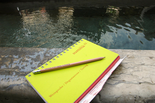 Was mich am Sonntag auf der summa besonders beeindruckt hat, habe ich fotografisch festgehalten. Trotzdem ein paar Worte, vor allem vor dem Hintergrund, dass ich die darauffolgenden Tage ca 300 italienische Rotweine probiert habe, bis sich mein Mund wie ein geflämmtes Holzfass angefühlt hat: Ich mag sie immer mehr, die frischen, klaren Rotweine, die bewusst auf Barrique verzichten, die trotzdem nicht weniger komplex sind, denen man trotzdem eine lange Lebensdauer unterstellt und deren Saftigkeit zu einer Trinkfreude führt, die ich bei vielen holzbetonten Weinen zunehmend vermisse. So gefielen mir die Moric-Blaufränkisch von Roland Velich besonders gut (außerdem sein Grüner Veltliner, auch wenn er eher schmeckte wie ein mineralischer Grenache blanc aus dem Roussillon, oder vielleicht gerade deshalb) und ebenso die – leider sündhaft teuren – Weine Dominik Hubers von Terroir al Limit. Besonders gefreut hat es mich, über drei reinsortige Cabernet Francs zu stolpern, aktuell meine favorisierte rote Rebsorte, und das ausgerechnet aus Österreich. Bründlmeyer Junior hatte drei Jahrgänge mitgebracht, alle drei sehr individuell aber immer typisch Cabernet Franc. Ich werde mich mal auf die Suche machen müssen, um sie hier zu finden. Bis Sonntag wusste ich nicht einmal von deren Existenz.