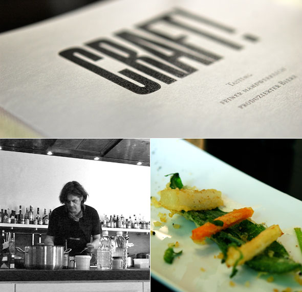 Es gibt Abende, die sind so angenehm stimmig und passend, dass sie lange in Erinnerung bleiben. Ein solcher Abend war der CRAFT! Abend, den Torsten Goffin und Marco Kramer zusammen mit den Bierexperten Sebastian Sauer und Detlef Rick im Kölner Marieneck veranstaltet haben. Es liegt natürlich auch daran, dass ich das Gefühl habe, nach Hause zu kommen wenn ich mit dem Zug den Rhein überquere und entsprechend eine gewisse Sentimentalität mitgebracht habe. Es liegt auch daran, dass es schön war, Freunde wiederzusehen – die, die hinter den Töpfen für uns gekocht haben und die, mit denen ich dann später am Tisch saß. Überrascht war ich, das ein halbes Dutzend Menschen meinen Aufruf im Blog gefolgt sind und teils aus Hannover angereist sind, befriedigend, dass sie das nicht bereut haben, im Gegenteil. Sebastian und Detlef haben kurzweilig und kompetent durch den Abend geführt und das Menü von Torsten und Marco hat ziemlich perfekt gepasst.