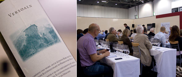 Begonnen hat die Runde von elf Weinen mit einer der rarsten Sorten unter der Sonne. Der Versoaln existiert nur noch in einer einzigen Anlage, nämlich in einem Rebberg des Castel Katzenzungen in Südtirol. De facto gab es nur noch einen einzigen, jahrhundertealten Rebstock, von dem aus mittlerweile so viele Ableger gezüchtet wurden, dass man im Durchschnitt heute wieder auf 400 Flaschen pro Jahrgang kommt. Das Castel beansprucht für sich, mit dem Versoaln den ältesten existenten Rebstock auf ihrem Acker zu haben. Ob das wirklich so ist, mag dahingestellt bleiben, auf jeden Fall ist der Stock sehr alt und verfügt über ein einzigartiges DNA-Profil.