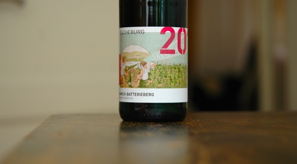 Der Escheburg ist Riesling in Ortsweinqualität. Er ist anspruchsvoller als der Gutswein, jedoch nicht so dicht, extraktreich und konzentriert wie die Lagenweine Batterieberg, Ellergrub oder Steffensberg. Doch wenn man die Flasche öffnet und den ersten Schluck ins Glas fließen lässt, wird direkt klar, dass man hier Freakstoff im Glas hat – markante Noten und kein Einerlei. Man riecht hier die rauchig-öligen Noten der Spontanvergärung. Dann kommt Stein, Stein in der Form von Schiefer, Schiefer in der Form von Würze. Dazu gesellen sich Süßholz und zunächst Holunderblüten, überhaupt viele Blüten, ein schwerer Blütenduft steigt aus dem Glas, dazu Penatencreme und ein ganzer Strauß an Kräutern. Erst später kommt so etwas wie Frucht, Apfel und auch Grapefruit samt Schale. Am Gaumen dann weiche Säure, natürlich der Schiefer, die Würze des Schiefers und Salz. Vor allem aber die Struktur des Rieslings begeistert. Das Seidige, das Schlanke, das Elegante bei einem Hauch Restsüße, die deutlich geringer ausfällt als die Jahre zuvor, denn die Säure hätte dem Wein 2011 keine entsprechende Balance geben können, wenn Kollmann den Wein mild ausgebaut hätte.