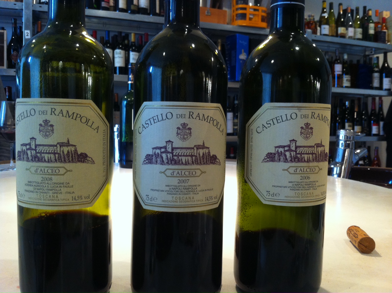 Dafür liebe ich meinen Job. Dafür, dass einer um die Ecke kommt und mich fragt, ob ich Lust hätte, drei Jahrgänge d’Alceo des toskanischen Weinguts Castello dei Rampolla zu probieren. Natürlich habe ich Lust.