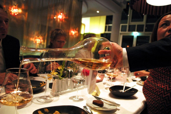 Deshalb plädiere ich für Korkgeld oder aber für so gemäßigte Aufschläge, dass der Gast gerne trinkt. Der Gast soll doch trinken und nicht peinlich berührt sein Glas hin und her schieben, auf das es nicht allzu schnell zur Neige geht. Der Gast soll Spaß am Wein haben und wenn er diesen Spaß hat, wird er trinken und ich hole mir das Geld wieder rein, dass ich in den geringeren Aufschlägen verloren glaubte. So habe ich im besten Fall nicht weniger verdient als der traditionell wirtschaftende Kollege, habe aber einen Gast, der beschwingt und vielleicht ein wenig glücklicher und befriedigter nach Hause geht.