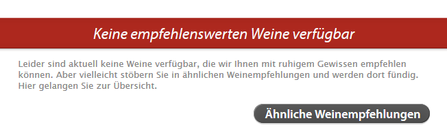 Leider hilft das dem ernsthaft Weininteressierten auf Eurer Seite jedoch überhaupt nicht weiter. Ihr behauptet, dass Ihr das Geschmacksprofil zusammenstellt, in dem Ihr es mit den Daten von tausenden von Weinen vergleicht. Wenn ich Euer Angebot richtig einschätze, ist es jedoch gerade mal dreistellig, wenn überhaupt, ich habe nicht nachgezählt. Doch beispielsweise unter der Rubrik Österreich gibt es nur drei Weine, unter der Rubrik Spanien auch. Beeindruckend groß jedoch finde ich die Anzahl jener Rubriken, wo einfach gar keine Weine angeboten werden. Ich kann ja nachvollziehen, dass Ihr noch wenige Partner habt, die Euch die Weine liefern, aber warum bitte seid Ihr dann schon online, wenn Ihr praktisch gar nichts bieten könnt? Und warum um alles in der Welt fragt ihr Blogger und Journalisten, dass diese Eure Seite bewerten sollen, wenn es dort kaum Angebot, zumindest keine Vielfalt gibt?