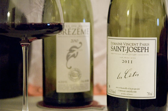 Der Les Côtes ist ein weiterer, wirklich schöner, bezahlbarer Syrah von der Nord-Rhône. Jung und doch trinkreif, wenn auch mit Sicherheit noch mit viel Entwicklungspotential. Vincent Paris’ Les Côtes aus dem zunehmend wieder populärer werdenden kleinen Gebiet St. Joseph duftet wie ein ganzer Strauß Wildblumen und Früchte. Dazu kommen, typisch für diese Gegend, Oliven, Wacholder, etwas Tabak und Süßholz. Der Wein ist schlank, nicht nur was den Alkohol von 12,5% angeht, klar und fein, frisch vor allem und kein bisschen wuchtig. Er wirkt eher kühl und gradlinig mit feinem Tannin und dem Geschmack von kühlem, feuchten, zerbröseltem Stein, auf dem eine ganze Menge reifer Waldbeerfrüchte, Trockenkräuter und Pfeffer zerrieben wurde. Säure hat der Wein und ihm fehlt im Gegensatz zum Brézème von Texier höchstens ein wenig Fleisch am Gaumen, etwas, wo man reinbeissen möchte um dem Mund voll zu haben.