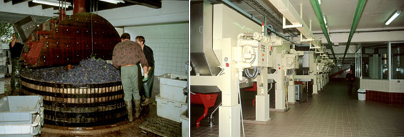 Geerntet werden die Trauben übrigens laut Gesetz per Hand. So ziemlich alles, was danach kommt, erfolgt mechanisch. Die Trauben werden in großen Keltern abgepresst, wobei – wie bei der Erntemenge auch – im voraus festgelegt wird, wie hoch der Pressertrag sein darf. Danach werden die Reben, die früh gelesen werden und dank der Nördlichkeit des Gebietes entsprechend eine so hohe Säure aufweisen, dass man aus ihnen kaum einen trinkbaren Stillwein keltern könnte, zu Wein gekeltert. Im Allgemeinen passiert das bei den Marken, auf die man im Lebensmitteleinzelhandel und in der Werbung trifft, in großen Edelstahltanks. Der Wein wird in der Zeit komplett durchgegoren. Nun erfolgt ein Produktionsprozess, der die Crux des Ganzen bildet. Denn die großen Häuser verfügen meist selber über hunderte von Hektar eigener Rebfläche, dann kaufen sie noch von hunderten anderen Hektar dazu. Die Erträge stammen meist aus allen vier Teilgebieten und sind dann auch noch aufgeteilt nach die drei üblichen Rebsorten Chardonnay, Pinot Noir und Pinot Meunier. Diese Sorten finden meist alle drei Verwendung im klassischen Brut. Dieser Brut hat keinen Jahrgang, das heißt, es ist ein Schaumwein, der aus (meist) drei Rebsorten sowie aus zig verschiedenen Rebbergen und zusätzlich noch aus unterschiedlichen Jahren stammt. Die Aufgabe des Kellermeisters ist es, aus diesen Dutzenden von Proben durch Selektion und Zusammenführung der Grundweine einen Champagner zu kreieren, der dem Stil des Hauses entspricht. Er muss dies natürlich in einer Form tun, in der die Grundweine noch knalltrocken und sehr sauer sind, während das Endprodukt später vergleichsweise süß ist. Hut ab vor jenen, die diese Kunst beherrschen, denn ihnen obliegt es, schon mit dem einfachen Brut den Stil des Hauses auszudrücken und die Qualität über Jahre konstant zu halten.