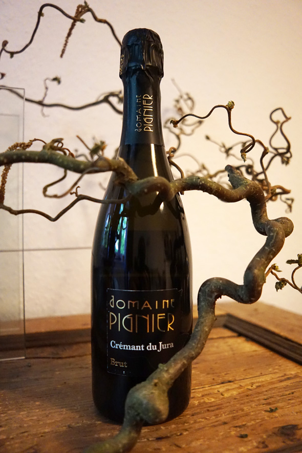Doch zurück zum Crémant. Dieser ist ein reiner Chardonnay Blanc de Blancs, der mit einem Ertrag von 45hl/Hektar geerntet wurde. Der Wein wurde spontan vergoren und im großen und kleinen Holzfass ausgebaut und 18 Monate nach der zweiten Gärung sur latte gelagert. Abgefüllt wurde er als brut, wobei ich von einem unteren brut-Bereich ausgehe, so um die sechs bis acht Gramm Dosage.