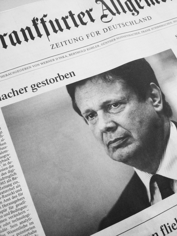 Gestern ist Frank Schirrmacher gestorben. Es bleibt Schweigen und die Leere in unserer intellektuellen Wüste wird nur noch offensichtlicher und, ohne das als Übertreibung zu empfinden, schmerzhafter.