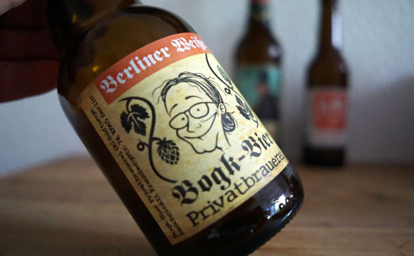 Die hier probierte Berliner Weiße stammt aus der ersten Tranche, die Andreas Bogk nach seinem erfolgreichen Crowdfunding-Projekt all jenen geliefert hat, die das mit finanziert haben. So bin ich über einen Bekannten an dieses Bier geraten. Es ist typisch hefetrüb mit einem sehr niedrigen Alkoholgehalt von 2,5% und einer Stammwürze von 7%. Das Bier riecht direkt sauer in einer Art, wie man es von milchsauer vergorenem Kohl kennt (Sauerkraut) oder, noch ähnlicher Kanne-Brottrunk. Wer Kinder hat und sich daran erinnert, wie es roch als diese nach der getrunkenen Milch aufstoßen mussten oder etwas davon wieder ausgespuckt haben – das ist in etwa der Geruch. Es ist ein Duft und auch ein Geschmack, an den man sich erst ein wenig gewöhnen muss. Das geht bei dieser Berliner Weiße ganz schnell, bei manch extremeren belgischen Geuzes dauert das womöglich etwas länger. Hier, wie gesagt, gibt es die softere Version, die neben den Brett-Aromen und der Milchsäure vor allem zitronig ist, ohne beißend zu sein. Das Bier ist am Gaumen säuerlich, ebenfalls zitronig, weich, da die Milchsäure sehr weich ist und nur minimal bitter. Es ist ein Bier, dass man gerade im Sommer einfach so wegtrinken kann. Es ist harmonisch und steigt einem nicht in den Kopf.