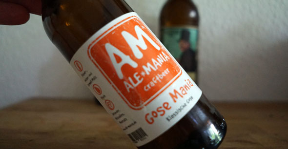 Die Biere des umtriebigen Bonner Brauers Fritz Wülfing heißen seit einiger Zeit nicht mehr Fritz Ale sondern Ale Mania. Das hat damit zu tun, dass der Hamburger Brause-Hersteller Fritz Cola plötzlich irgendwas dagegen hatte. Aber wie auch immer, Fritz Wülfing ist mit Ale Mania jetzt markentechnisch hoffentlich auf der sicheren Seite. Geschmacklich ist er das ja schon lange, denn er war einer der ersten, die den langweiligen deutschen Biermarkt mit einer Infusion Ale wiederbelebt haben. Das, was er hier in die Flasche füllt, ist diesmal kein Ale sondern ebenfalls eine Gose. Diese hat 5.1% Alkohol, wurde klassisch mit Salz und Koriander hergestellt, dazu mit Perle-Hopfen und neben Pils- und Weizenmalz auch mit Karamellmalz. Perle wird gerne für Ales, Porter und IPAs verwendet und hier liegt für mich in Verbindung mit dem Karamellmalz persönlich ein Problem.