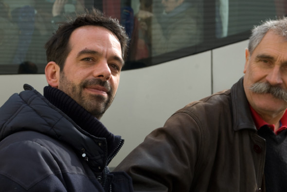 Nach dem Auftakt der Tour in den Tuffsteinkellern von Thierry Germain und einem Abend in der Weinbar Aux Saveurs de la Tonnelle in Saumur, wo es alle Weine der Region mit geringem Aufschlag gibt, stand der Besuch des Weinguts Clos Rougeard auf dem Programm. Dieser Programmpunkt, den ich organisiert hatte, hat mich schon die ganze Zeit im Vorfeld ins Schwitzen gebracht, empfangen die Foucault Brüder Charly und Nady, die Inhaber des mehr als hundert Jahre alten Familienweinguts doch sehr selten Gäste. Schließlich drohte der gesamte Besuch am Tag selber noch zu platzen und es klappte nur mit Hilfe von Intervention befreundeter Weinhändler und Romain Guiberteau, mit dem wir am Nachmittag verabredet waren. Der holte uns an der Privatadresse ab und brachte uns zum neuen Keller, von dessen Existenz ich vorher nichts gewusst hatte. So mussten wir uns, da wird schlussendlich zu spät waren, zusammen mit Romain, der ein Schüler von Nady Foucault ist, ein wenig in den Hintergrund drängen, während Nady einer Gruppe von Sommelier-Schülern ausgeschenkt hat.