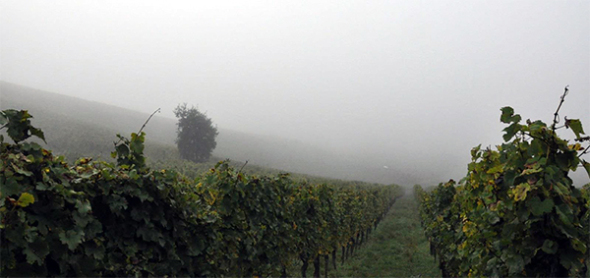 Auch wenn sich die generelle Wetterlage seit dem 21.September weitestgehend stabilisiert hatte, waren die Verhältnisse weiterhin problematisch. Zwar blieben weitere Regenfälle aus und das Wetter zeigte sich vielfach freundlich und überaus warm, aber die dichten Nebel des Morgens kombiniert mit den hohen Tagestemperaturen verursachten eine zügige Entwicklung in den Weinbergen. Nach kurzer Verschnaufpause galt es, keine weitere Zeit zu verlieren. Wie schon bei der ersten Selektion der roten Trauben lief es wiederum auf die Formel hinaus: „Lieber ein tendenziell gesünderes, voll ausgereiftes Lesegut ernten, als ein hochreifes aber stark fäulnisbehaftetes Material lesen.“