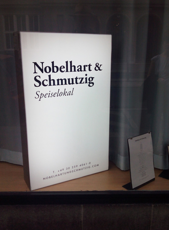 Das Speiselokal, das Billy Wagner zu Beginn dieses Jahres an einem festen Ort eröffnet hat, befindet sich nicht in den Elbvororten Hamburgs sondern in der Friedrichstraße in Berlin. Dort war ich am Samstag als Gast – genau ein Jahr, nachdem Billy Wagner das erste Mal mit dem ungewöhnlichen Namen in die Öffentlichkeit getreten ist um zusammen mit Micha Schäfer im Rahmen eines Supper Clubs die ersten Gäste zu bewirten. Was nach dieser ersten Verlautbarung passiert ist, war eine ungewöhnlich lang anhaltende Werbekampagne für ein Restaurant, das noch gar nicht existierte. Billy hat dabei alle Medien und vor allem die sozialen genutzt, um Nobelhart & Schmutzig in die Gehirne der Ess- und Trinksüchtigen zu pflanzen. Das hat gewirkt, denn seit dem ersten Tag ist das Restaurant, das sich, wie früher viele in Berlin, Speiselokal nennt, ausgebucht.