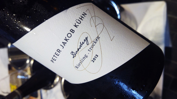 Was mir neben dem hohen Niveau von Barth, Allendorf (immer weiter nach oben, großartig), Schloss Johannisberg und Robert Weil (immer wieder Robert Weil, die Weilschen Weine kann man sich einfach blind weglegen), vor allem aufgefallen ist, ist die Rückkehr von Schloss Vollrads. Im einst so stolzen Schloss hat man den langjährigem Niedergang augenscheinlich gestoppt. Vollrads’ Schlossberg präsentiert sich frisch, herb und in sich ruhend. Während einige Große Gewächse des Rheingaus noch auf sich warten lassen, da sie noch gar nicht gefüllt sind, hat ein anderer Winzer aus dem Rheingau nun grundsätzlich entschieden, seine Weine erst ein Jahr später zu präsentieren. Es ist der an Konsequenz kaum zu überbietende Peter Jakob Kühn. Wer seine beiden Großen Gewächse Sankt Nikolaus und Doosberg probiert hat, wird kaum noch daran zweifeln, dass es Sinn macht, solchen Weinen ein Jahr mehr Zeit zu geben. Peter Jakob Kühn präsentiert Weine von einer Tiefe und Substanz, wie ich sie selten getrunken habe. Sie erinnern mich an Vogonen-Raumschiffe aus der Verfilmung des Anhalters, die unglaublich groß mitten in der Luft stehen ohne einen einzigen Laut. Das sind schwebende Schwergewichte, Schwerkraft außer Kraft gesetzt mit herrlicher Frucht, Würze und einer inneren Spannung, die einen das ganze Drumherum der Probe für einige Momente vergessen lässt. Ich werde in Kürze noch mal auf die Weine zurückkommen, hier sei aber schon mal deutlich vermerkt: Diese Weine werden ihrem Namen definitiv gerecht, es sind Große Gewächse!