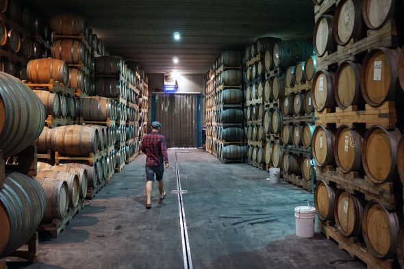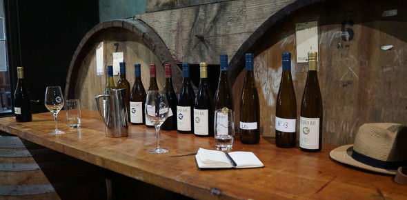 Natürlich probiere ich mit Ed (Bruder Matthew, der seit vielen Jahren zusammen mit seiner Frau die Weine verantwortet, befindet sich gerade im Urlaub) im Keller des Weinguts auch den obligatorischen Sauvignon Blanc, den es hier zum Beispiel beim Zweitlabel Main Divide gibt. Aber der Fokus des Weinguts Pegasus Bay liegt woanders. Hier gibt es, was Sauvignon angeht, weniger den Vergleich zu Entre deux Mers als zu Graves, wenn ich das mal so bezeichnen darf. So steht Sauvignon Semillon 2012 auf dem Tisch sowie Merlot Cabernet 2011. Die wichtigsten Weine aber sind neben dem Chardonnay vor allem Pinot Noir und Riesling. Der Chardonnay 2012 stammt aus meinem favorisierten Jahrgang. Für die Winzer war 2012 nicht unbedingt das Paradejahr, aber die Sommerkühle hat in weiten Teilen des Landes für eine feine, kühle Stilistik gesorgt. Bei Pegasus Bay hatte man ziemlichen Respekt während 2012. Der Sommer ist so gut wie ausgefallen, dafür wurde der Herbst angenehm warm und trocken. Die Ernte war vergleichsweise klein und genau das hat geholfen, die Trauben in eine gute Balance aus Säurewerten und Reife zu bekommen. Die Chardonnay-Reben stammen aus der Anfangszeit des Weinguts, sind also wurzelecht und liefern kleine, aromatische Beeren (im Wesentlichen der häufig verwendete Mendoza-Klon), die im April und Mai gelesen und langsam gepresst wurden. Die Vergärung erfolgte ausnahmslos spontan in Puncheons mit einem Anteil von 30% neuem Holz. Im Sommer 2013 durchlief der Wein eine malolaktische Gärung. Wein gehört für mich zu den besten Chardonnays des Landes. Kräftig, straff, trotz Malolaktik mit präsenter Säure, absolut trinkanimierend und das Gaumenwasser fördernd. Wunderbar frisch mit Grapefruit, Zitronenabrieb, Nektarinen und leichtem Biskuitteig, sehr gelungen die Integration des Holzes. Mit dem Pinot Noir 2012 verhält es sich ähnlich. Auch dieser stammt aus besagtem Jahrgang und teils vom gleichen, 30 Jahre alten Weinberg mit wurzelechten Reben. Der Pinot wurde, wie der Chardonnay, je nach Block und Reife zwischen Mitte April und Ende Mai gelesen. 90 % wurde entrappt und nicht angepresst. 10 % blieben Whole Bunch und wurden unter die entrappten Trauben gemischt. Nach eine kühlen Vorvergärungsphase wurden die offenen Bottiche leicht erwärmt, um die Gärung einzuleiten. Nach der Gärung wurden die Fermenter verschlossen und der Pinot hat eine Woche Zeit, sich zu sammeln, bevor die einzelnen Blocks in unterschiedlichem Barrique ausgebaut wurden (30% neu). Auch hier hat der Wein im Folgejahr eine malolaktische Gärung durchlaufen und verblieb 18 Monate im Holz. Da hier Barriques statt wie beim Chardonnay die größeren Puncheons verwendet wurden, ist der Holzanteil spürbarer aber keinesfalls dominant. Dominant ist viel mehr die lebendige, frische saure Kirsche wie in einem Kriek aus einer guten Brüsseler Brauerei. Neben Kirsche und dunkeln Früchten merkt man, so bilde ich mir ein, ein wenig die 10% Stile, die hier mit vergoren wurden. Das gibt dem Wein etwas leicht Grünes, etwas Vegetabiles, was im Laufe der Zeit untergehen wird, jetzt am Anfang aber durchaus, und nicht unangenehm, präsent ist. Schokolade, etwas Waldboden und Gewürze runden das Geschmacksprofil ab, die Tannine sind griffig und passend. Der Prima Donna Pinot Noir 2011 ist die so genannte Reserve-Qualität des Pinot. Es sind die extra selektierten Trauben bester Qualität aus den besten Blocks des Weinbergs. Der warme Sommer und Herbst hat es gut gemeint mit den Winzern. Sie haben saftiges und hochreifes Traubengut einfahren können. Entsprechend zeigt sich der Wein anders als der 2012er. Der Wein wirkt von Anfang an reifer, opulenter mit dunkler Frucht im Untergrund und einem Teil roter, frischer Frucht. Hier findet sich viel mehr Dunkelheit wie fleischige Noten, Oliventapenade, Waldboden. Der Wein ist elegant, sanft und würzig. Das Fassmuster Bella Donna 2012 bildet die Quintessenz der beiden vorangegangenen Weine. einerseits stoffiger, etwas dunkler und dichter als der Pinot Noir, gleichzeitig aber leichter und frischer als der konzentrierte 2011er ist das mein Favorit unter den roten Weinen des Weinguts.