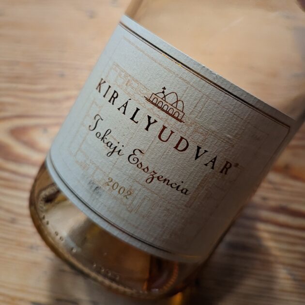 Abschließend gab es noch ein paar Tropfen Esszencia 2002 von Királyudvar. Bei 3 % Alkohol ist das kein Wein mehr. Die Cuvée aus 74 % Furmint und 26 % Hárslevelű wurde über 66 Monate in Demi-Johns ausgebaut. Die Süße liegt jenseits der 548 Gramm pro Liter und die Säure bei 13,4 Gramm. Das ist ein extremes Konzentrat, von dem man wirklich nur ein paar Tropfen in einer meditativen Stunde benötigt.
