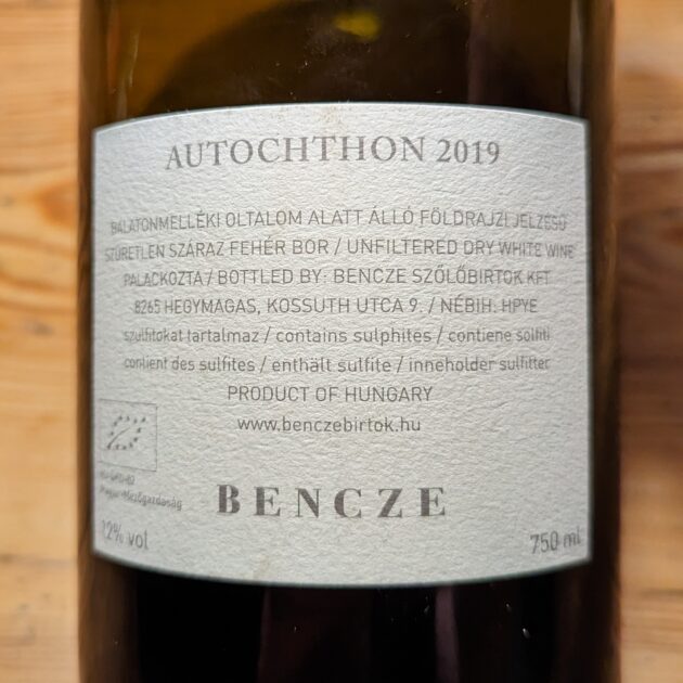 Ebenfalls direkt aus Szent György-hegy findet man die Weinberge von István Bencze, der sein Weingut 2011 am Berg gegründet hat und dort einem ganz eigenen Stil folgt, den ich sehr mag, der aber durchaus polarisiert. Und das tat er auch gestern. Der Autochthon 2019 wirkte auch noch unfertig, die Säure noch nicht ganz eingebunden. Es ist ein Wein aus Furmint (22 %), Hárslevelű (Lindenblättriger) (42 %), Kéknyelű (Blaustengler) (14 %) und Rózsakő (22 %) (Rosenstein – Der Rózsakő Wein, eine Hybride, die aus der Kreuzung der Sorten Kéknyelű (Blaustengler) und Budai). Die Trauben wurden zu verschiedenen Lesezeitpunkten geerntet. Die Hälfte des Hárslevelű wurde entrappt und in offene Gärbehälter gefüllt, wo er 8 Tage lang blieb. Die andere Hälfte des Hárslevelű wurde zusammen mit dem Kéknyelű und dem Furmint als ganze Trauben sanft gepresst. Der Saft wurde in verschiedenen Amphorentypen vergoren und 9 Monate lang auf der Feinhefe gelagert. Anschließend wurde er im Juni verschnitten und im Juli ohne Schönung, Filtration oder SO2-Zusatz in Flaschen abgefüllt. Ein wilder, trüber, fordernder Wein, der zumindest aktuell auf jeden Fall eine Essensbegleitung benötigt.