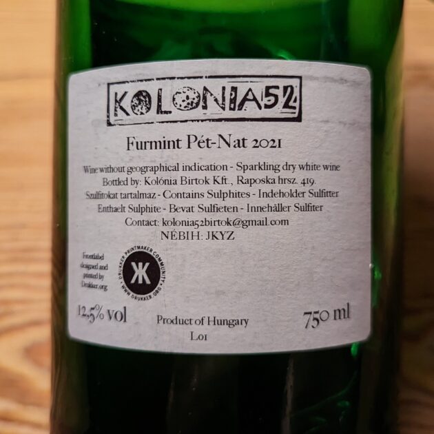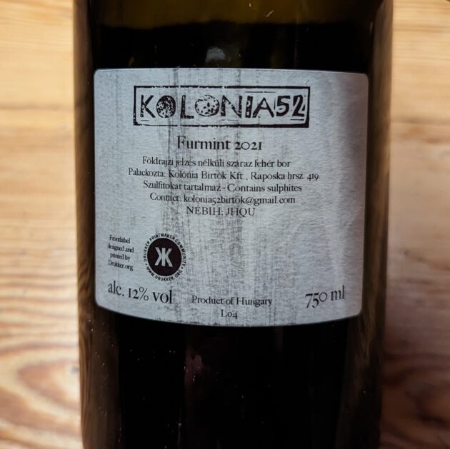 Der Kolonia 52 Furmint 2021 stammt noch aus zugekauften Bio-Trauben, so lange der eigene Weinbefrg noch wächst. Sie stehen im Ság-hegy, Dénes Birtok. 5 % der Trauben hatten Botrytis. es wurde direkt gepresst, für fast ein Jahr in ein 600-Liter-Eichenfass. Durch Schwerkraft abgefüllt, ohne Zusatz. Kein Filter, keine Schönung. Der Wein schafft nicht ganz die Stimmigkeit der Weine von Gilvesy, bietet aber einen sehr schönen zusätzlichen und ungeschminkten blick auf diese Rebsorte und ihre Affinität zum Basalt.