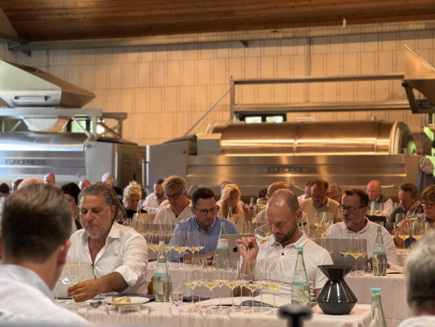 Das Ganze fand im Weingut Wittmann statt und der Kreis jener, die am Kopf des Saales saßen und in die Weine eingeführt haben, hat sich 2009 erweitert. Neben Steffen saß dort Sophie Christmann, neben Hansjörg Rebholz die Söhne Hans und Valentin.
