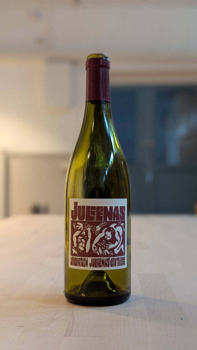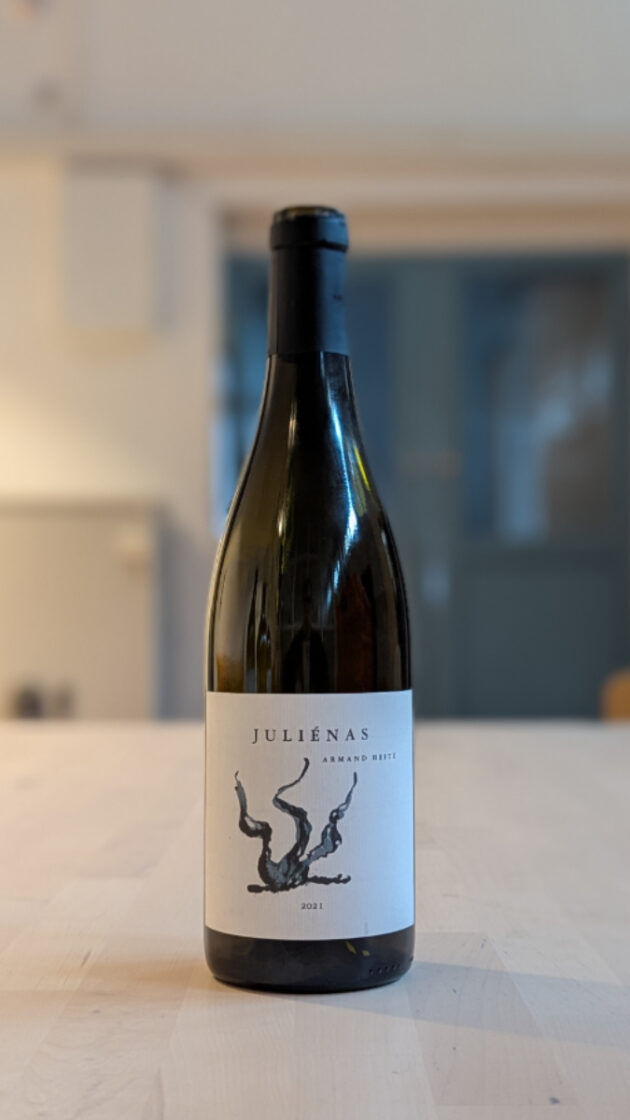 Weiter ging es mit den 2021er Juliénas von Armand Heitz, der in Meursault beheimatet ist und insofern ebenfalls von außen kommt, um Gamay aus dem Beaujolais zu erzeugen. Dazu nutzte er 100 % ganze Trauben in der macération carbonique. Das Ergebnis des „Juliénas“ ließ uns wiederum deutlich unbefriedigt zurück. Auch hier fehlte der Trinkfluss, der Beaujolais wirkte etwas schwerfällig und satt.