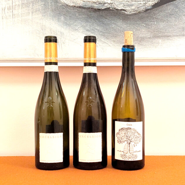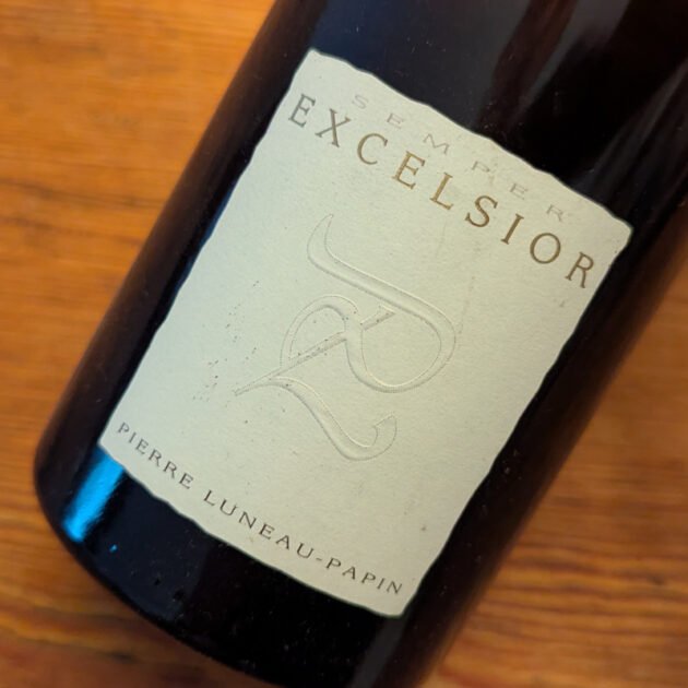 Ich weiß nicht genau, wann der kommende Wein einfach Semper Excelsior heißt und wann zusätzlich noch die Lage Clos des Noëlles darauf steht, denn der Muscadet kommt immer aus diesem Clos in der 1936 gepflanzten Lage La Plécisière im Dorf La Chapelle-Heulin. Es handelt sich um einige der ältesten Reben des gesamten Nantais. Der Boden besteht aus Schiefer und Glimmerschiefer. Die Lage gehört zum Cru Communal Goulaine. Nach Spontanvergärung erfolgte die Reifung auf der Hefe in unterirdischen, mit Glas ausgekleideten Zement-Cuves für 36 Monate. Der 2015er Semper Excelsior der Domaine Luneau-Papin (17,05/20) stand neben dem 2002er Semper Excelsior Clos des Noëlles (16,78/20). Der 2015er zeigte sich unglaublich frisch und präzise mit einer Laser-Säure, vibrierender Mineralik und enorm viel Druck. Dazu gab es eine feine Hefe-Textur und eine helle Frucht. Der 2002er war zwar nicht ganz so gut, wie die Flaschen, die ich bisher geöffnet hatte, aber trotzdem ein toller Wein! Es gab Reifnoten von Assam-Tee, Quitte, reifer Zitronenzeste, kandierten Orangen, von leicht gerösteten Nüssen und Karamell. Am Gaumen wirkte der Muscadet reif, rund und seidig mit Kraft und Energie, leicht herb zestigen Noten und einer glasklaren, reifen Säure.