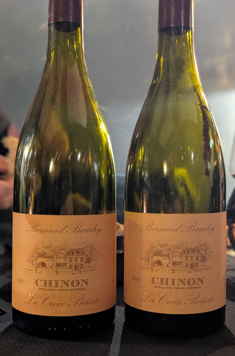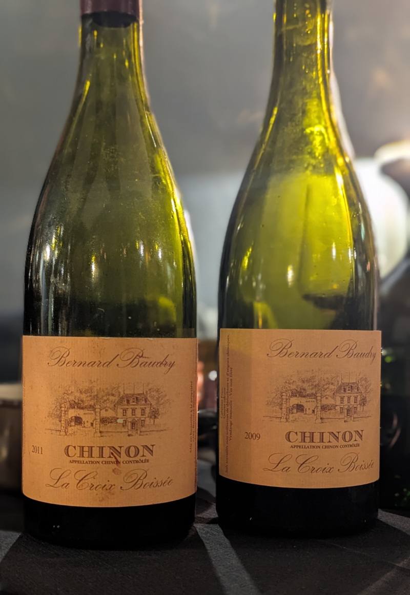 Zu den bedeutendsten Domänen in Chinon gehört die von Bernard Baudry, die heute – und auch schon länger – von seinem Sohn Matthieu Baudry geleitet wird. Seine Paradelage ist La Croix Boissée, und ich hatte das Glück, bei Tibor Werzel – meinem Bruder im Geiste, was Loire angeht – zusammen mit Matthieu Baudry und einer Reihe weiterer Gäste eine ganze Reihe dieser Cabernet Francs probieren zu können. Alle Weine stammten aus dem Keller von Tibor; probiert haben wir sie zusammen mit Speisen aus dem Bochumer Five, das Tibor zusammen mit Nicolai Menting führt. Tragisch war, dass Tibor so erkrankt war, dass er an dieser von ihm initiierten Veranstaltung mit seinen eigenen Weinen selbst nicht teilnehmen konnte. Umso honoriger, dass wir sie trotzdem genießen durften.