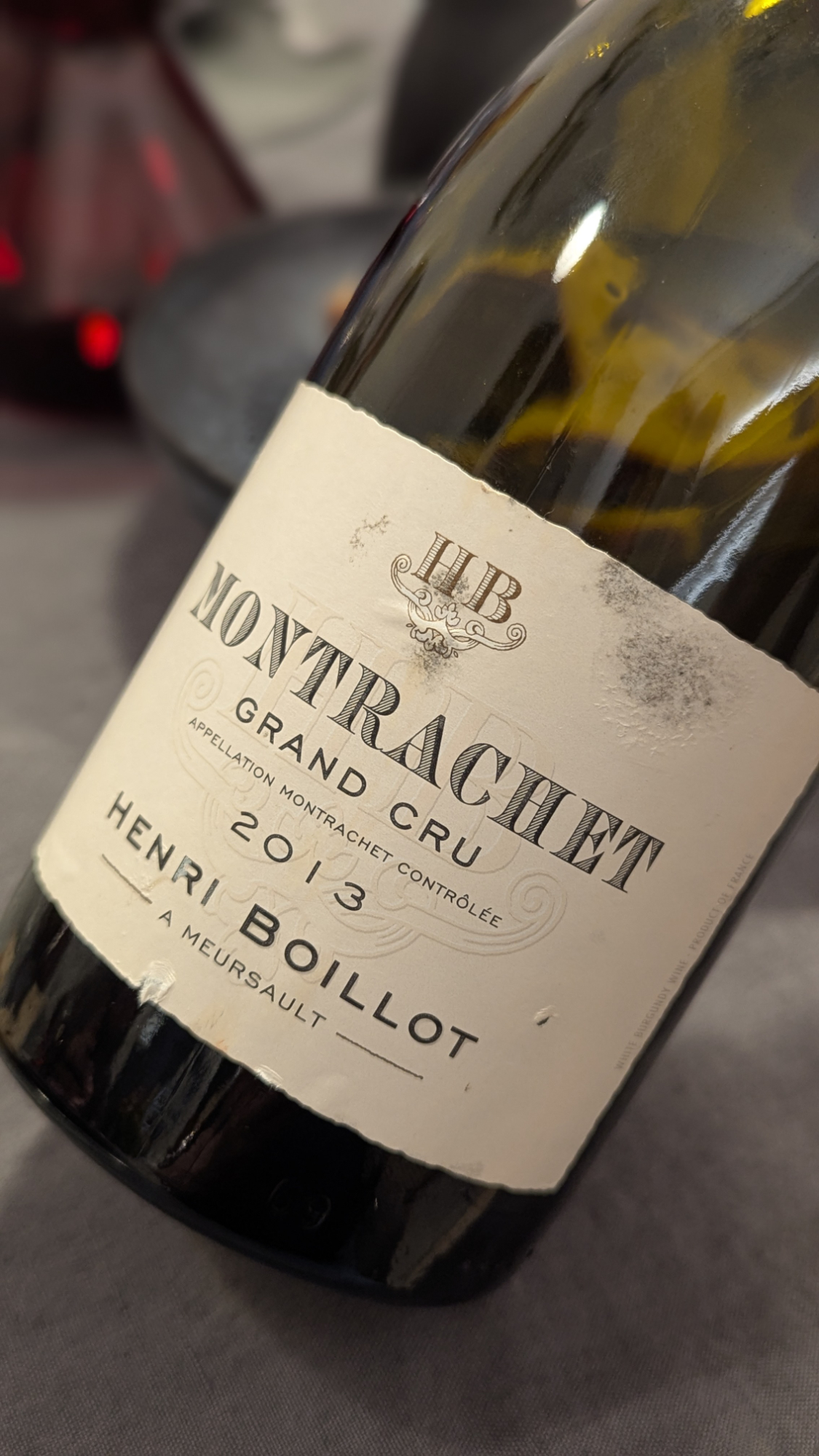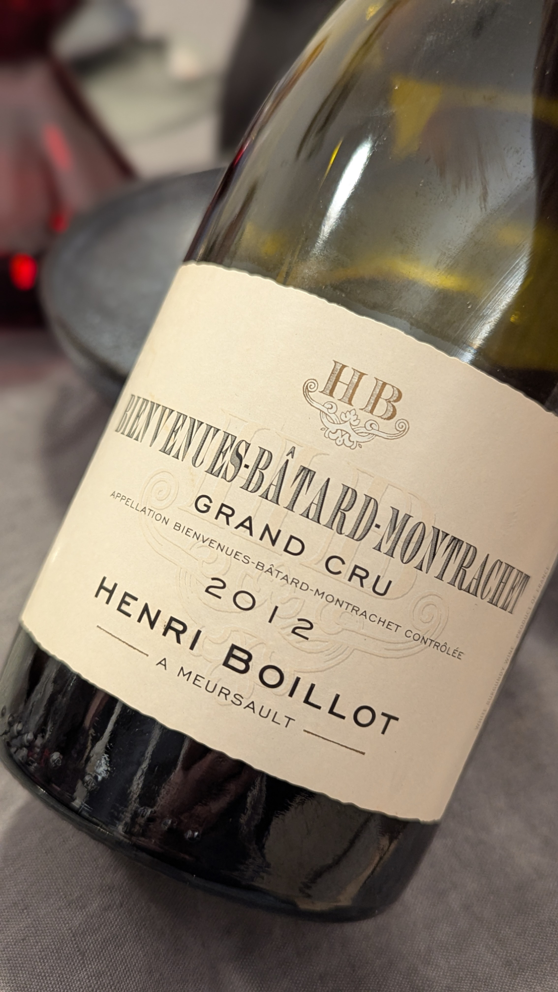Zum Essen gab es danach den 2019er Bourgogne Blanc von Pierre Boisson und den 2019er Bourgogne Blanc von seiner Schwester Anne Boisson. Diese Weine haben uns in ihrer Frische, in ihrer Offenheit und Klarheit tatsächlich ebenso begeistert wie die so viel teureren Montrachets. Tatsächlich hatten die beiden Bourgogne Blancs teils deutlich mehr Trinkfluss als die Grand Crus. Da kann man jetzt sagen: Dafür sind sie ja auch gemacht. Stimmt, aber den sollten die Grand Crus genauso besitzen, zumal wenn sie eigentlich optimal gereift sind. Hatten sie aber nur teilweise. Wer aufmerksam gelesen hat, der dürfte festgestellt haben, dass die Weine vergleichsweise wenig miteinander zu tun hatten. Nicht einmal die beiden 2012er von Henri Boillot schienen aus demselben Stall zu kommen. Und erst recht nicht, wenn man seinen 2013er mit einbezieht. Das ist das, was uns mal wieder irritiert hat. Eigentlich, so dachten wir, hätten die Weine zumindest teilweise ein Alter erreicht haben können, in dem sie den Charakter des Weinguts zugunsten des Herkunftscharakters ein wenig abgelegt haben könnten, aber dem war nicht so. Wird es irgendwann passieren oder überschätzen wir Herkunft einfach notorisch, auch wenn klar ist, dass es sich jeweils um sehr gutes Terroir gehandelt hat? Diese Frage ist auch nach der 30. Runde zum Thema Burgund und seine Appellationen noch immer nicht eindeutig zu beantworten. Zumindest nicht für mich.